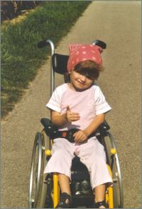 Franziska ist drei Jahre alt. Sie ist auch Spastikerin und kann weder sitzen noch gehen. Auch sprechen kann sie nicht. Franziska ist rund um die Uhr auf die Pflege ihrer Eltern angewiesen. Die Eltern benötigen dringend einen Spezialkinderwagen. |