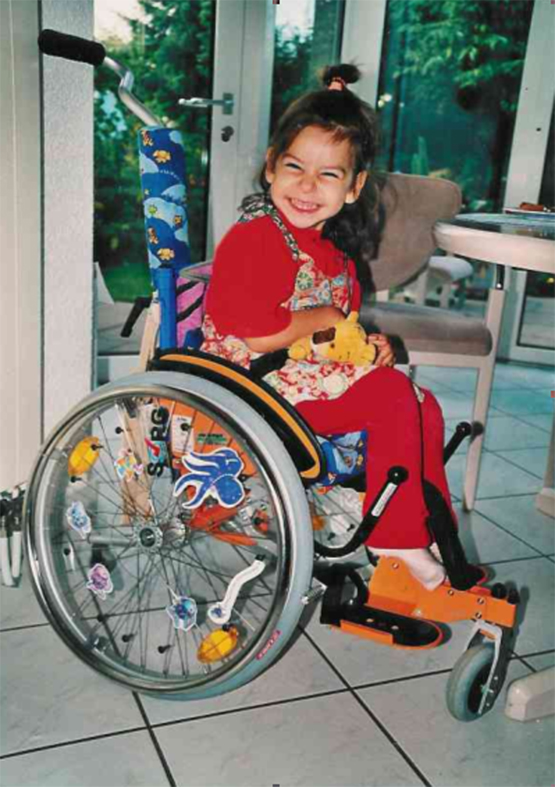 Cornelia ist 10 Jahre alt und wohnt in Chieming, Landkreis Traunstein. Sie hat einen offenen Rücken und sitzt deshalb im Rollstuhl.