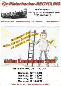 Bei der Aktion von Pletschacher Recycling kamen500 Eurofür die Aktion Kaminkehrer 2004 zusammen.Herzlichen Dank