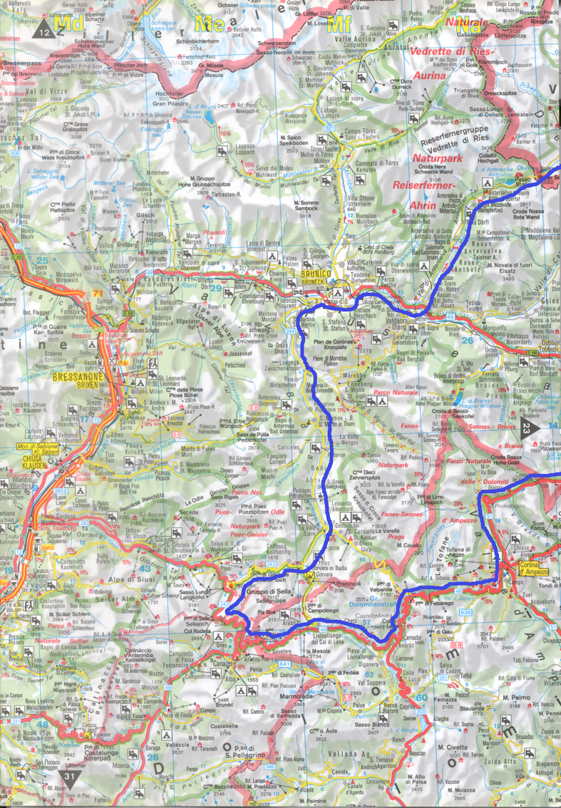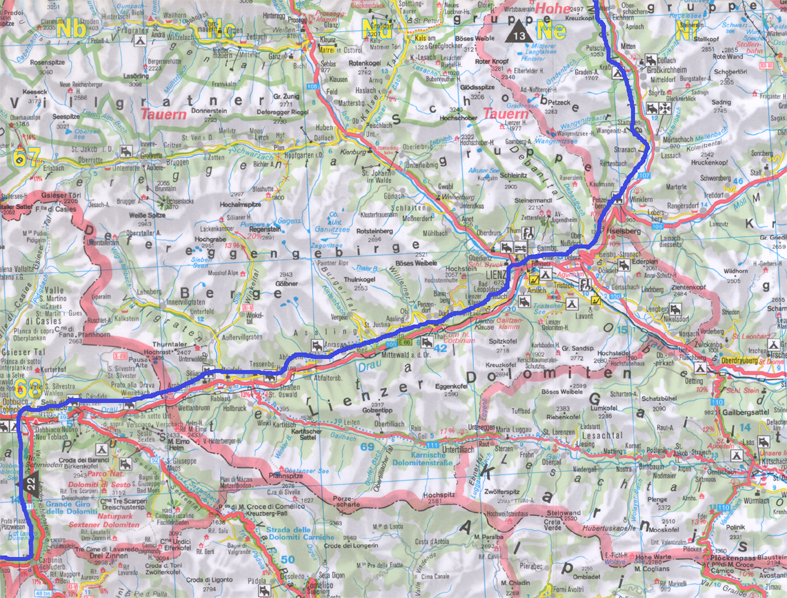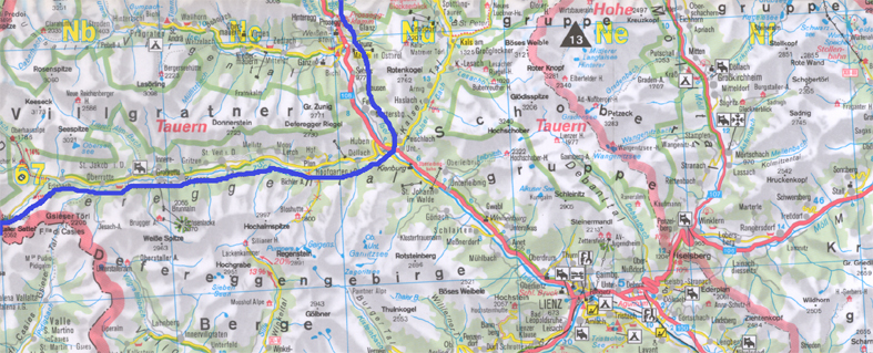 Auf den nachfolgenden Kartenabschnitten ist die geplante Tour zu sehen. Für Großglockner und Felbertauern ist Maut einzuplanen.Die Schwierigkeitsgrade bewegen sich von leicht bis schwer. Stramme Tagestour