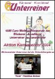 Am 5. Dezember übergab Bäckermeister Ludwig Unterreiner einen Scheck von 1000 Euro an den Organisator der Aktion Kaminkehrer 2004, "Ruaß" Thaddäus Mußner. Bäckermeister Unterreiner hofft auf das Verständnis der Kunden, dass es zu Weihnachten dieses Mal keine Werbegeschenke gibt. |